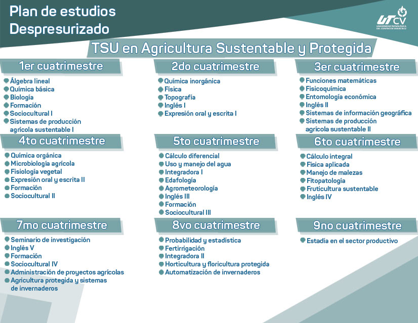 Formar Técnicos y Técnicas Superiores Universitarios e Ingenieros en Agricultura Sustentable y Protegida competentes y actualizados, con una formación académica altamente práctica soportada con planes y programas de estudio acreditados y pertinentes a las necesidades de los sectores que proveen servicios relacionados con la Agricultura Sustentable y Protegida, docentes certificados , infraestructura de vanguardia, cuerpos académicos de profesoras y profesores especializados, una fuerte vinculación nacional e internacional, que garantizan la calidad académica del programa educativo y la integración de egresados y egresadas competentes al mercado laboral.